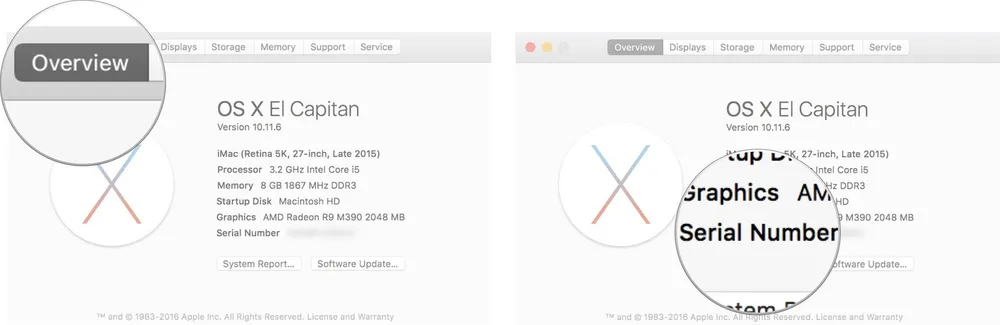 Nếu đang sử dụng máy Mac, người dùng chỉ cần nhấp vào biểu tượng Apple ở góc trên bên trái, sau đó chọn About this Mac. Tiếp theo, bạn hãy chuyển sang thẻ Overview (tổng quan) và lưu lại số sêri tương ứng.