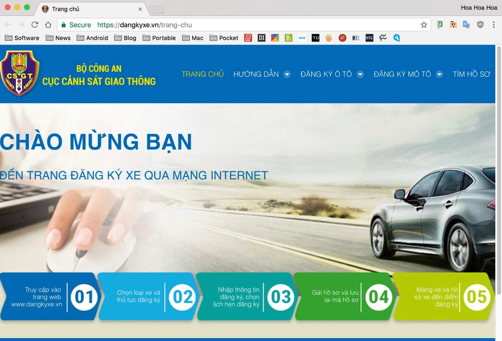 Bên cạnh đó, người dùng còn có thể thực hiện việc đăng kí xe qua mạng, tìm chủ sở hữu xe tại địa chỉ https://dangkyxe.vn/trang-chu hoặc nhấp vào các liên kết tương ứng ở góc phải.