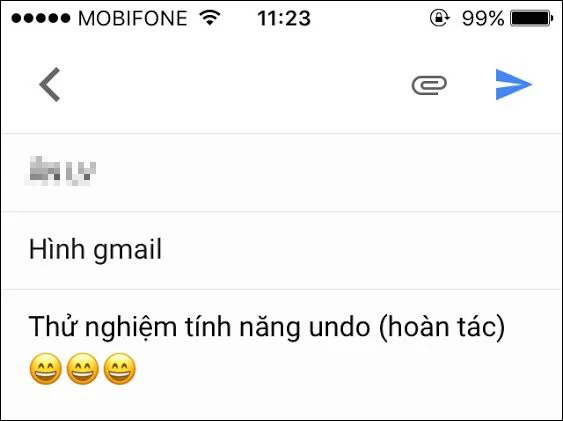 Khi soạn thảo email hoàn tất, bạn sẽ phải bấm vào nút Gửi ở góc trên bên phải để gửi thư đi. Lúc này, phía dưới màn hình sẽ xuất hiện thông báo Đã gửi và tùy chọn Undo (hoàn tác).