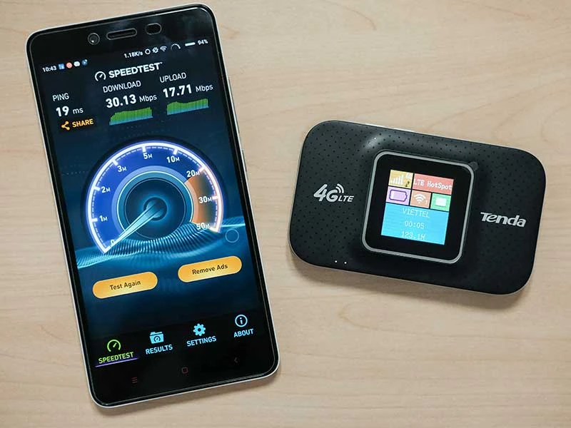 Nếu cần sử dụng màn hình và dễ dàng mang đi khắp nơi, bạn có thể trải nghiệm thử cục phát Tenda 4G185 hiện được bán với mức giá khoảng 1,6 triệu đồng. Thiết bị có tốc độ download/ upload lần lượt là 150 Mbps và 50 Mbps, viên pin có dung lượng 2.100 mAh cho thời gian phát WiFi liên tục khoảng sáu tiếng, hỗ trợ tối đa 10 thiết bị kết nối cùng lúc. Cục phát Tenda được trang bị màn hình OLED giúp người dùng có thể biết được thời gian mở máy, số lượng thiết bị đang kết nối, dung lượng tiêu hao và đặc biệt là tính năng WPS, cho phép kết nối WiFi mà không cần mật khẩu. Ngoài ra, ở mặt sau thiết bị còn có khe cắm thẻ nhớ (tối đa 32 GB), cho phép bạn chia sẻ dữ liệu, hình ảnh, video cho nhiều thiết bị khác nhau.