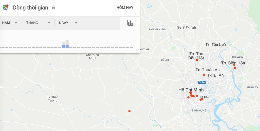 Mặc định, Google sẽ lưu lại tất cả địa điểm mà bạn đã từng đến và đi cùng các mốc thời gian tương ứng. Nếu muốn xem lại, bạn chỉ cần truy cập vào địa chỉ https://www.google.com/maps/timeline, lựa chọn ngày, tháng, năm cần xem và chờ một lát để dữ liệu được tải hoàn tất.