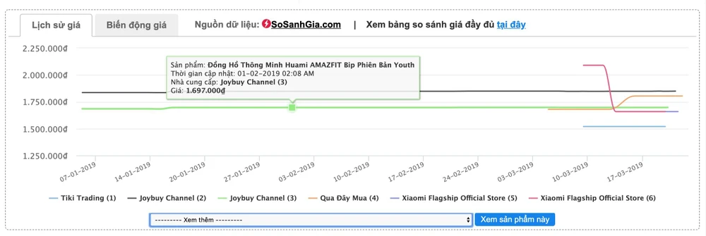 Ví dụ, chiếc đồng hồ thông minh Xiaomi Amazfit Bip hiện tại đang được bán với giá khoảng 1,52 triệu, trong khi một số cửa hàng khác lại có giá cao hơn đến vài trăm ngàn. Nhờ đó, người dùng có thể biết được nơi nào đang có giá bán tốt nhất và ổn định nhất.