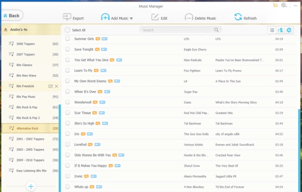 - Bước 4: Mục Music Manager sẽ liệt kê danh sách nhạc đang được đồng bộ với thư viện. Tại đây, bạn có thể chỉnh sửa, thêm bài hát mới hoặc làm nhạc chuông cho iPhone chỉ với vài thao tác đơn giản. Đối với các tính năng còn lại, người dùng có thể tìm hiểu thêm trong quá trình sử dụng bởi các thao tác gần như tương tự nhau.