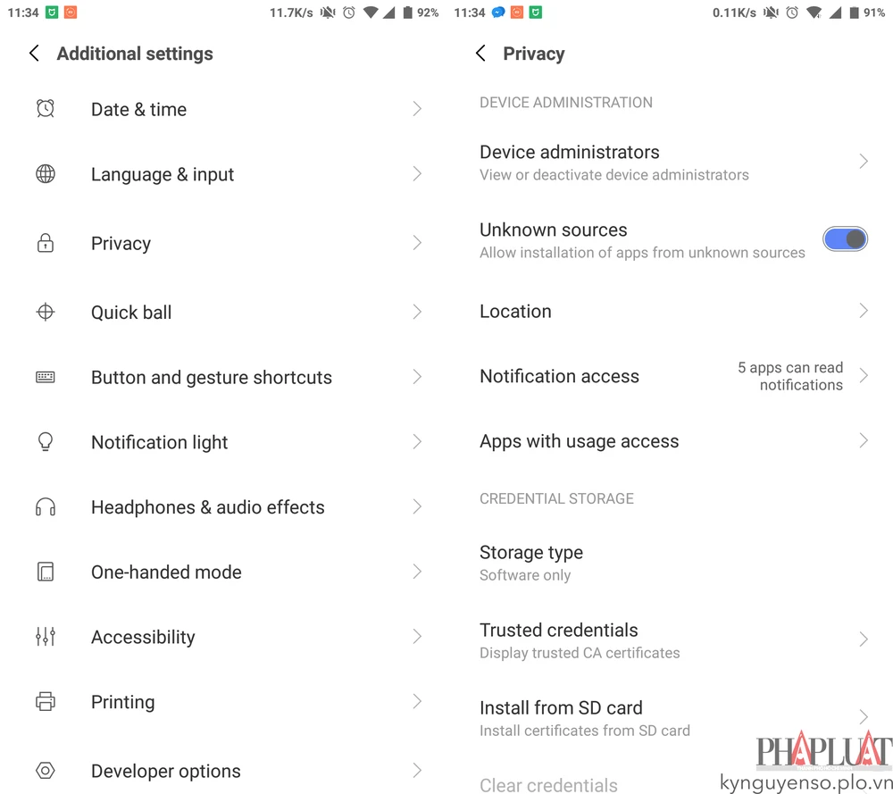 Kích hoạt tùy chọn Unknown sources trước khi cài đặt tập tin PAIRS.apk. Ảnh: MINH HOÀNG