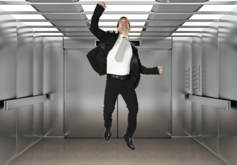 Nhiều người cho rằng việc nhảy lên khi thang máy rơi tự do sẽ giúp giảm thiểu lực tác động. Tuy nhiên, nếu muốn áp dụng đúng kĩ thuật, bạn cần phải có đủ thời gian cũng như nhảy đúng với tốc độ mà thang máy đang rơi xuống. Do đó, việc nhảy lên khi thang máy đang rơi chỉ làm tăng khả năng khiến bạn bị đập đầu vào thang máy, sau đó đập xuống sàn và bị thương nặng hơn.