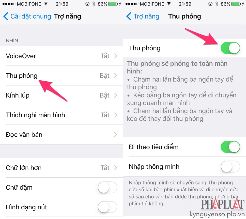 Kích hoạt tính năng Zoom (thu phóng) để khắc phục vấn đề trên. Ảnh: MINH HOÀNG