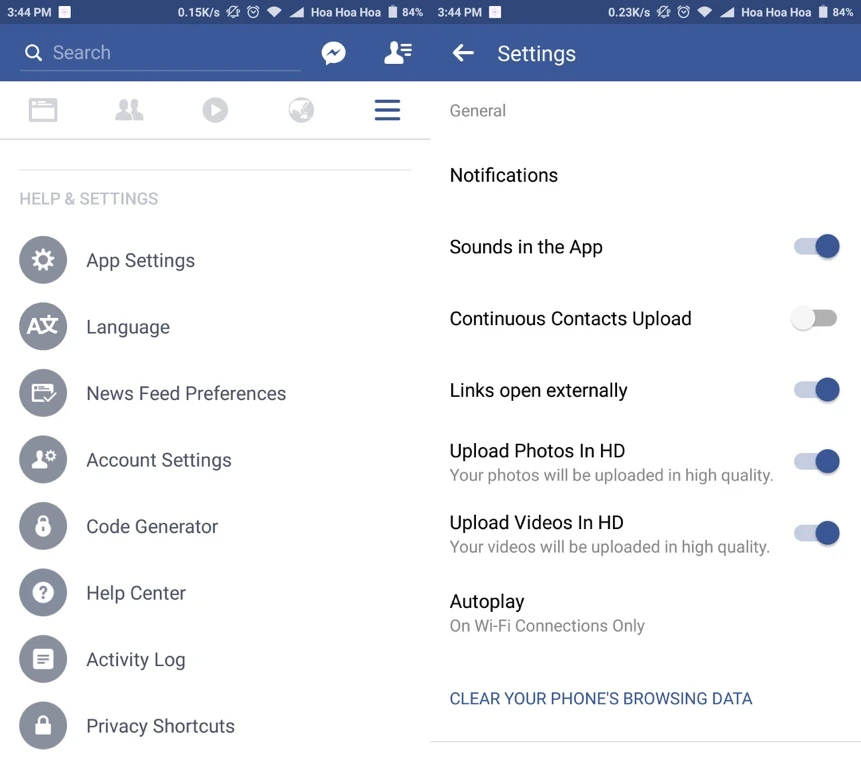Lưu ý, nếu không thấy xuất hiện tùy chọn Upload Videos in HD (tải video lên ở dạng HD), bạn hãy truy cập vào phần Settings (cài đặt) trên smartphone, chọn Apps (ứng dụng) > Facebook > Clear Cache và Clear Data để xóa sạch toàn bộ các thông tin đăng nhập cũ.