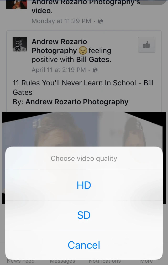 - Bước 2: Sau đó, nhấn và giữ im lên video cho đến khi xuất hiện cửa sổ pop-up yêu cầu lựa chọn chất lượng video (có thể là SD hoặc HD).