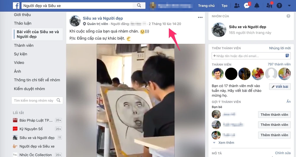 Đầu tiên bạn hãy mở đoạn video trong nhóm kín cần tải về, sau đó bấm vào ngày, giờ đăng tải video.