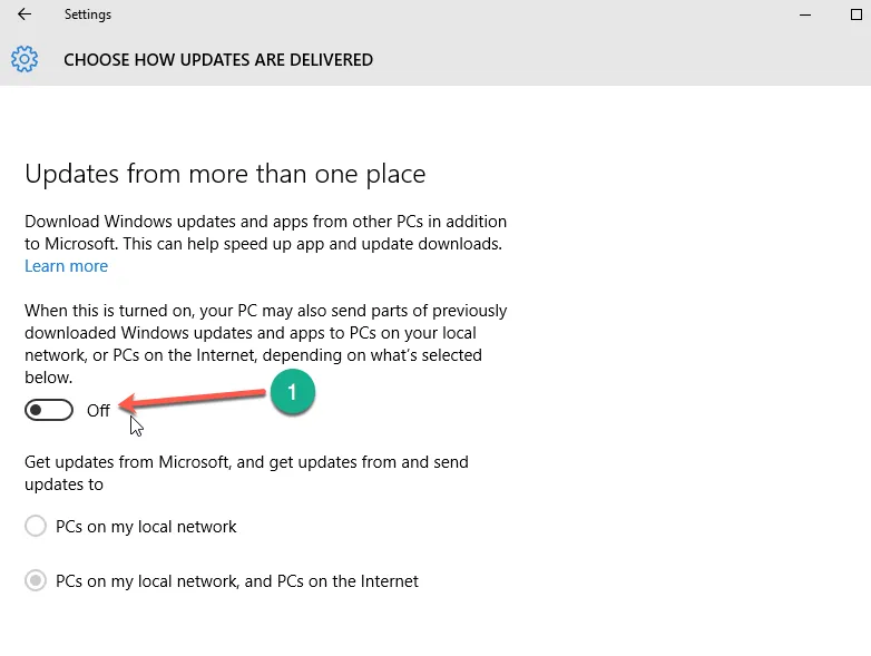 Để vô hiệu hóa, bạn hãy nhấp vào menu Start > Settings > Update & Security > Advanced Options > Choose How Updates Are Delivered và chuyển sang chế độ Off.