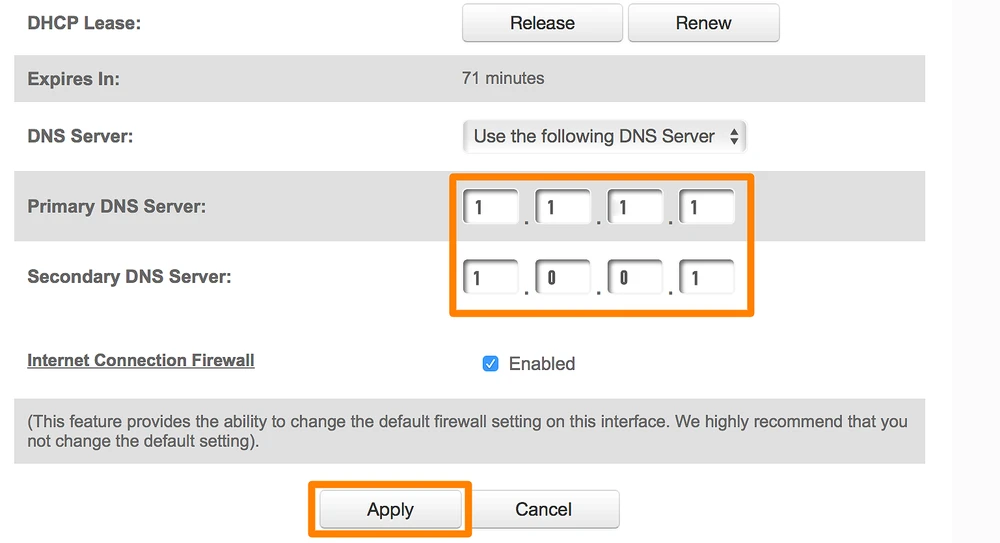 Trong phần cài đặt router, bạn hãy tìm đến mục DNS Server, sau đó thiết lập máy chủ DNS mới là 1.1.1.1 và 1.0.0.1 rồi nhấn Save hoặc Apply để lưu lại. Nếu đang sử dụng IPv6, người dùng chỉ cần nhập 2606:4700:4700::1111 và 2606:4700:4700::1001.