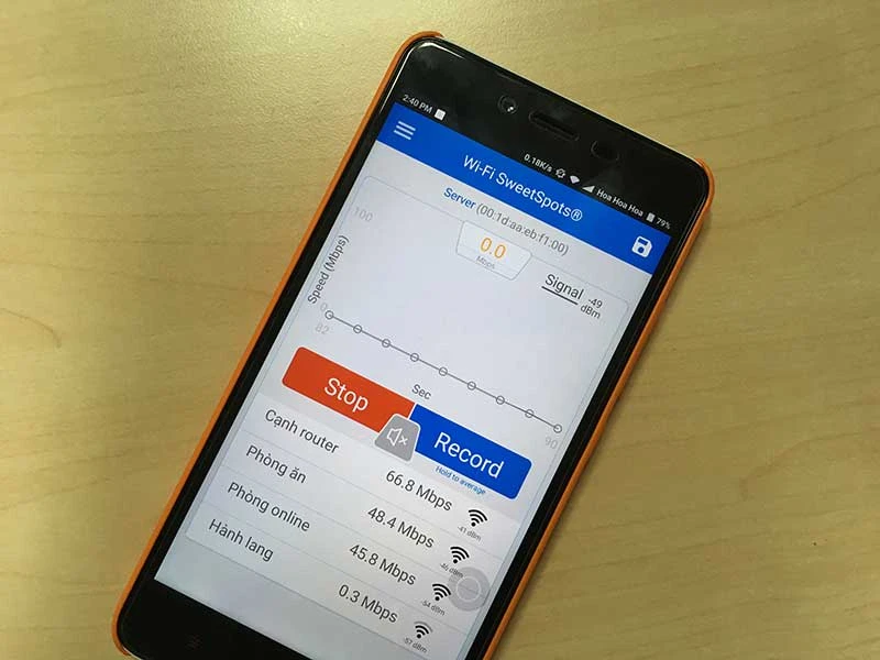 Đầu tiên, bạn hãy tải ứng dụng tại https://goo.gl/nha8L0 (iOS) hoặc https://goo.gl/YfXVID (Android). Nhấn Start để WiFi SweetSpots kiểm tra và đánh giá tốc độ tại từng địa điểm, sau đó người dùng có thể lưu lại vị trí có tốc độ nhanh nhất và thay đổi địa điểm đặt router cho phù hợp.
