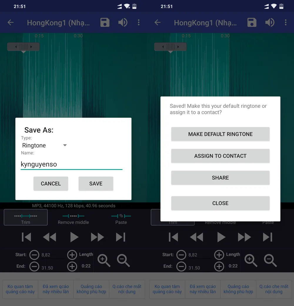 Tại mục Type, bạn chọn là Ringtone, đặt tên tùy ý rồi nhấn Save > Make default ringtone để đặt làm nhạc chuông mặc định trên điện thoại. Ngoài ra, bạn cũng có thể sử dụng đoạn nhạc này để làm nhạc chuông thông báo, tin nhắn,…