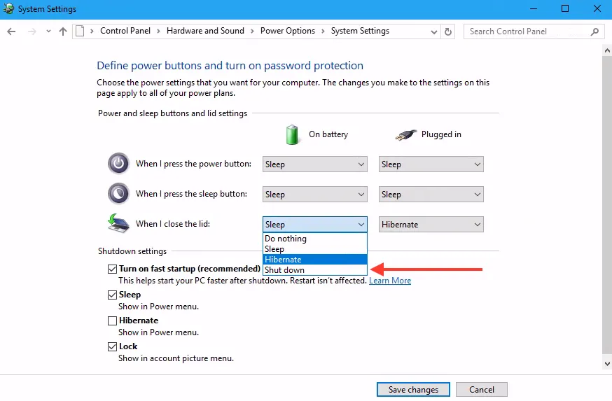 Cuối cùng nhấn Save changes để áp dụng các thay đổi. Kể từ lúc này, khi bạn gập màn hình laptop, Windows sẽ khởi chạy tiến trình tắt máy. Windows sẽ không cưỡng ép (force) hệ thống phải tắt. Nếu bạn còn ứng dụng đang chạy, Windows sẽ đóng chúng trước và sau đó mới tắt hệ thống.