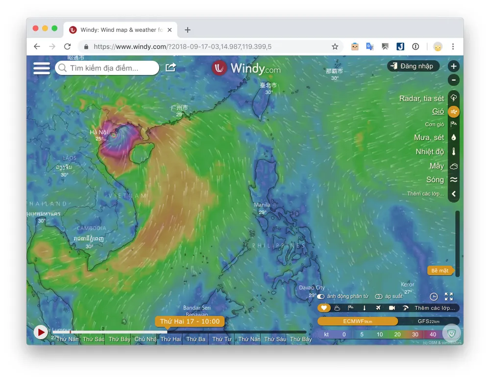 Theo dõi đường đi của siêu bão Mangkhut bằng smartphone. Ảnh: MINH HOÀNG