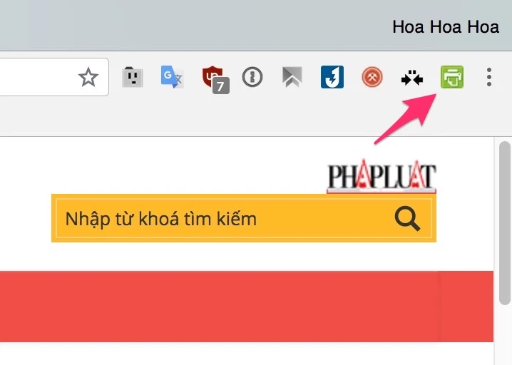 Khi hoàn tất, bạn chỉ cần mở trang web cần in, bấm vào biểu tượng của tiện ích ở góc trên bên phải.