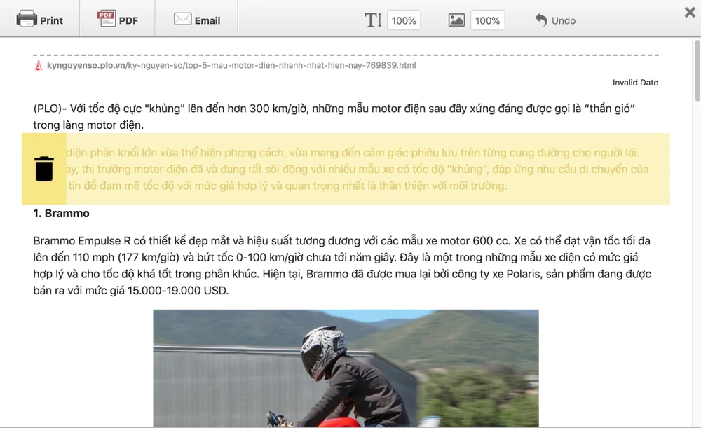 Lúc này, tiện ích sẽ tự động loại bỏ các thành phần không cần thiết. Tất nhiên, nếu muốn, người dùng vẫn có thể chủ động xóa bỏ những nội dung không cần thiết bằng cách bấm vào biểu tượng thùng rác. Cuối cùng, bạn chỉ nhấn Print và cấu hình thêm một vài thông số cơ bản.