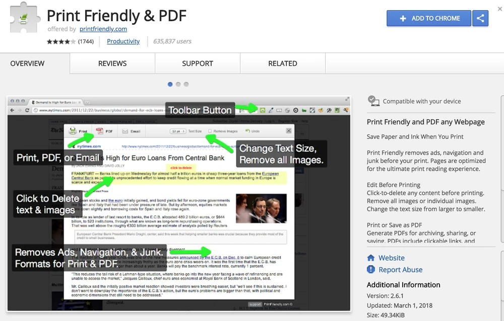 Nếu đang sử dụng Google Chrome, bạn có thể cài đặt thêm tiện ích mở rộng Print Friendly & PDF tại địa chỉ http://bit.ly/2G5jIDq, Add to Chrome (thêm vào Chrome) > Add extension (thêm tiện ích).