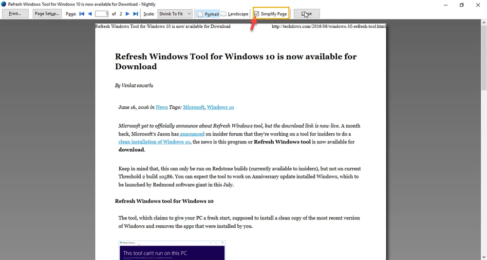 Đối với trình duyệt Firefox, nhà phát triển đã tích hợp sẵn tính năng Simplify Page, giúp loại bỏ quảng cáo và những thứ khác khỏi trang in tương tự như trình duyệt Microsoft Edge.