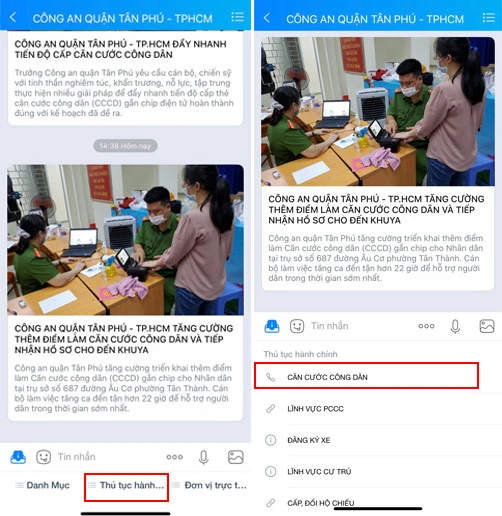 Cụ thể, các thông báo như đối tượng được ưu tiên thực hiện cấp căn cước công dân gắn chip điện tử, thời gian làm việc, địa điểm cấp căn cước công dân có gắn chip lưu động trên địa bàn quận Tân Phú… đều được trang Zalo “Công an quận Tân Phú” cập nhật liên tục và đầy đủ, để người dân kịp thời nắm bắt thông tin, nhằm hạn chế việc đi lại và giảm thiểu phiền hà.