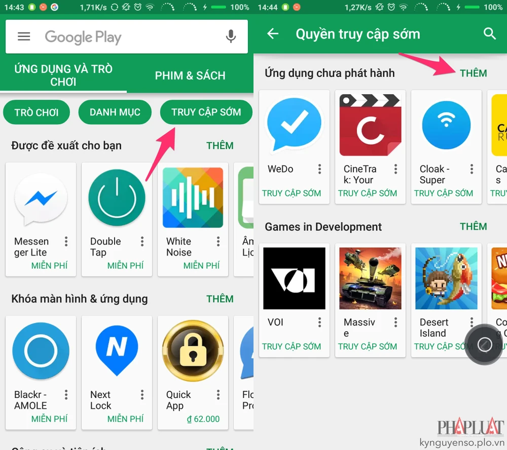Khi mở ứng dụng Google Play, bạn sẽ thấy xuất hiện các tab (thẻ) thể loại như Games (trò chơi), Categories (thể loại)… Trong khuôn khổ bài viết này, chúng ta chỉ cần quan tâm đến mục Early Access (truy cập sớm).
