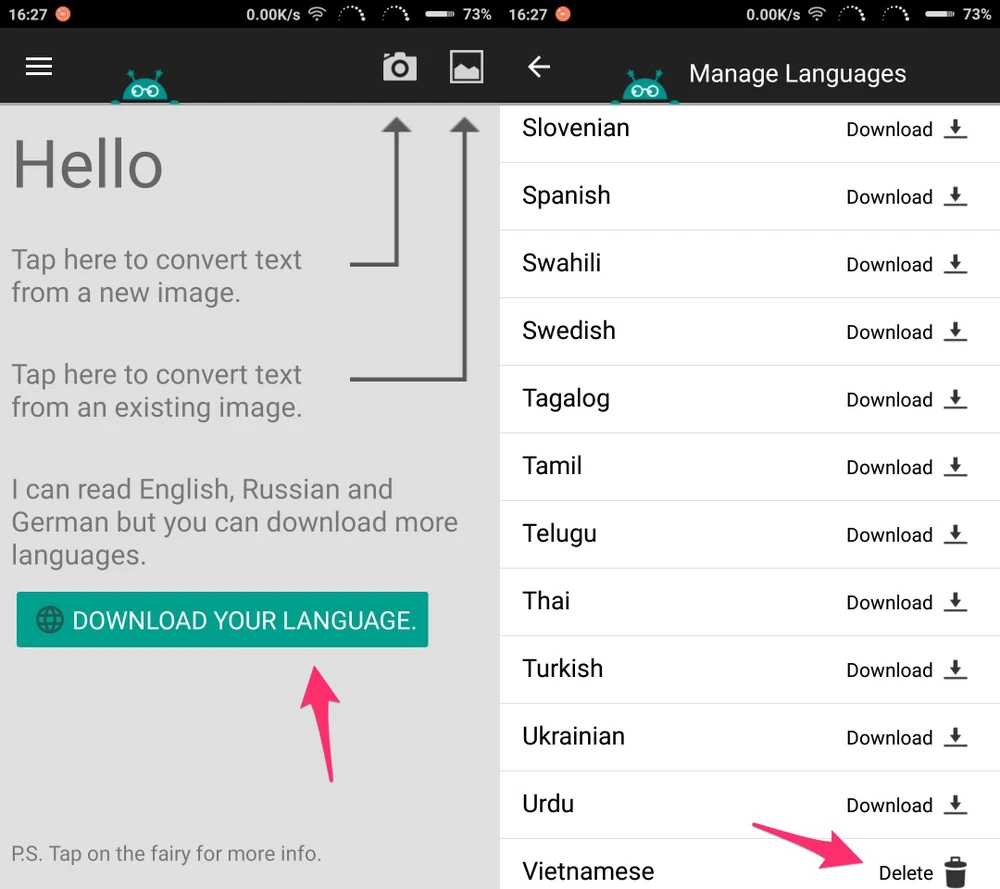 Hiện tại có khá nhiều ứng dụng miễn phí trên Google Play và App Store hỗ trợ trích xuất văn bản (tiếng Việt) trên hình ảnh, tuy nhiên nổi bật hơn cả vẫn là Text Fairy và CamScanner.