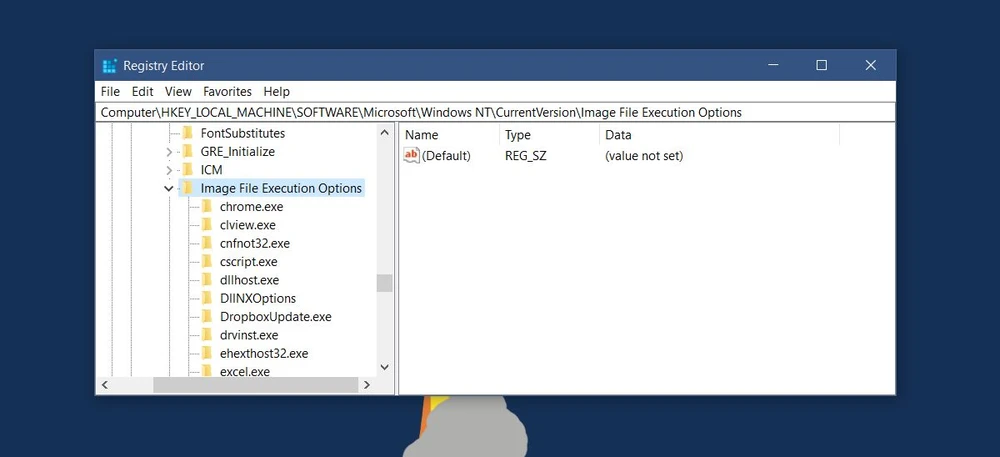 - Bước 1: Để tạm thời vô hiệu hóa phần mềm theo dõi, bạn hãy nhấn tổ hợp phím Windows + R, gõ regedit khung trống rồi nhấn Enter. Tìm đến đường dẫn HKEY_LOCAL_MACHINE\Software\Microsoft\WindowsNT\CurrentVersion\Image File Execution Options.
