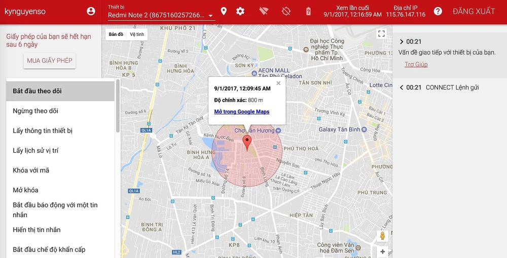 Tiếp theo, bạn hãy chọn lệnh Start tracking (bắt đầu theo dõi) > Send Command (gửi lệnh), khi có thay đổi xảy ra, ngay lập tức ứng dụng sẽ hiển thị cảnh báo ở khung nhỏ bên phải hoặc gửi đến email bạn dùng đăng ký lúc đầu.