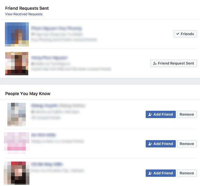 - Bước 3: Tiếp theo, bạn hãy kích vào liên kết View Sent Requests để xem lại các yêu cầu đã gửi đi. Điều này đồng nghĩa với việc người dùng có thể biết được những người đã từ chối lời mời kết bạn của bạn.
