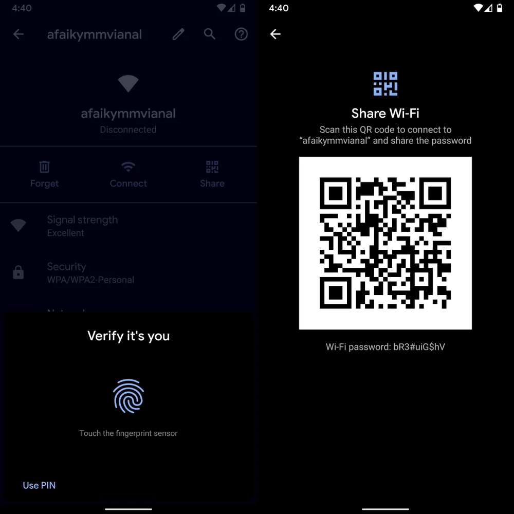 Ngoài ra, người dùng cũng có thể nhấp vào tùy chọn QR code để ứng dụng tạo mã QR có chứa thông tin mạng. Xem thêm bài viết Cách chia sẻ kết nối Wi-Fi không cần cung cấp mật khẩu.
