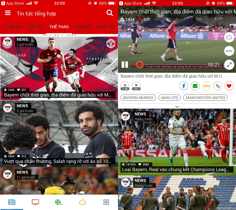 Đầu tiên, bạn hãy tải và cài đặt ứng dụng VTV Go cho smartphone tại địa chỉ https://apple.co/2HGyDoH (iOS) hoặc http://bit.ly/2HHC9zb (Android). Phần Tin tức sẽ bao gồm các thông tin mới nhất, nóng nhất về các sự kiện thể thao đặc sắc đang diễn ra. Bên cạnh đó còn có nhiều bài phân tích chuyên sâu về phong độ của từng cầu thủ, lối chơi và chiến thuật…