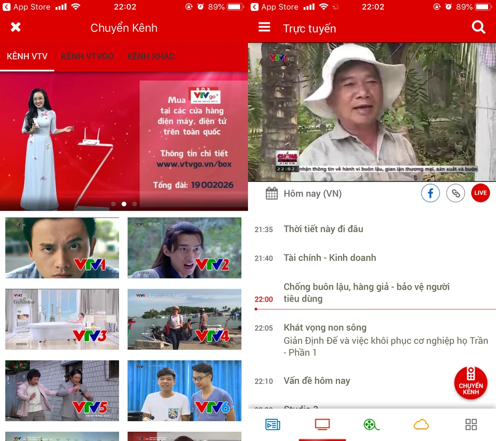 Để xem trực tiếp World Cup 2018, bạn hãy chuyển sang thẻ Trực tuyến (biểu tượng màn hình màu đỏ ở bên dưới), sau đó nhấp vào nút chuyển kênh và chọn VTV6 hoặc VTV3 (tùy vào trận đấu sẽ diễn ra ngày hôm đó). Nếu muốn ứng dụng nhắc nhở khi gần đến giờ bắt đầu, bạn chỉ cần trượt từ phải sang trái và chọn Có để xác nhận lại.