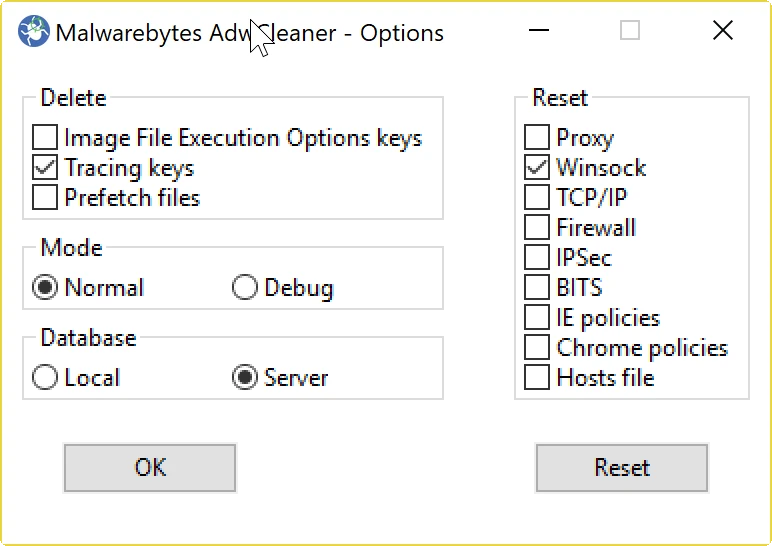Trong phần cài đặt ứng dụng, bạn có thể thay đổi một số thiết lập của chương trình như chế độ gỡ lỗi, lựa chọn cơ sở dữ liệu trên máy tính hoặc máy chủ… Ngoài ra, AdwCleaner còn hỗ trợ thêm một số chức năng khác như: