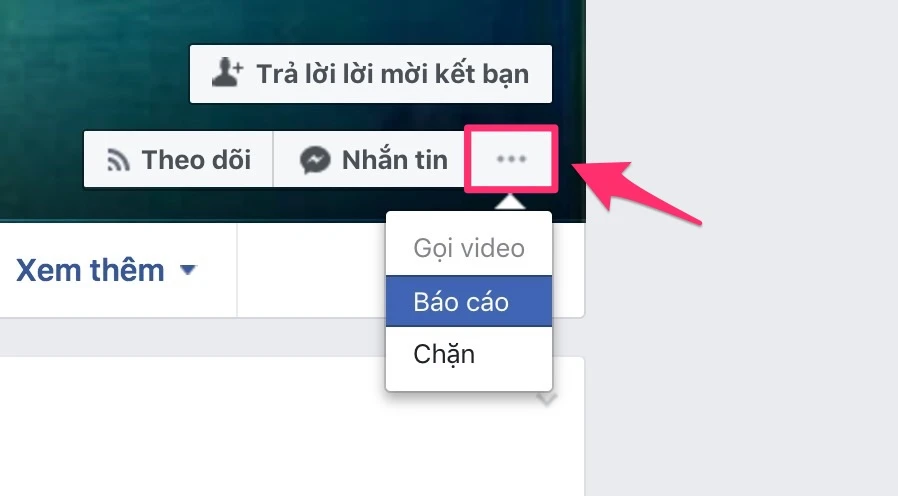 - Bước 1: Đầu tiên, bạn hãy truy cập vào trang Facebook giả, nhấn vào biểu tượng “…” ở góc trên bên phải và chọn Report (báo cáo) > Report this profile (báo cáo trang cá nhân này).
