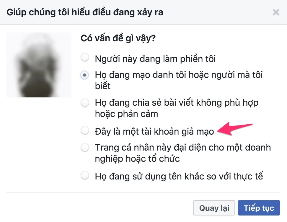 Báo cáo các tài khoản Facebook giả mạo