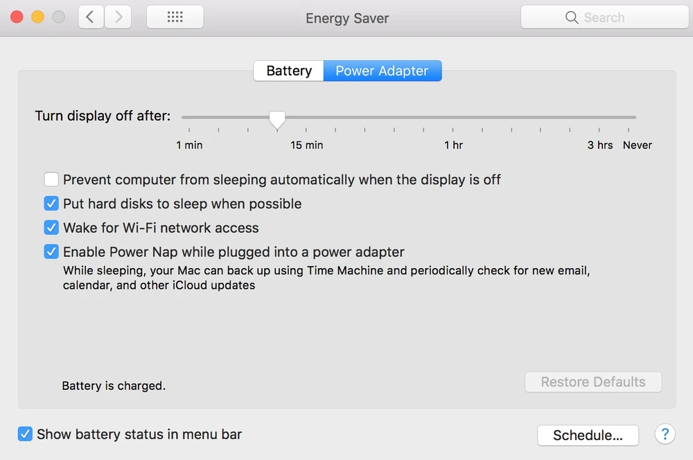 Nếu đang sử dụng macOS, bạn hãy mở System Preferences > Energy Saver và kiểm tra lại toàn bộ các thiết lập trước đó.
