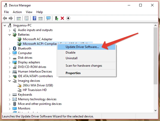 Việc bạn cần làm là nhấn phải chuột lên các mục và chọn Update Driver để cập nhật trình điều khiển. Khi hoàn tất, bạn hãy khởi động lại máy tính và thực hiện việc cắm sạc.