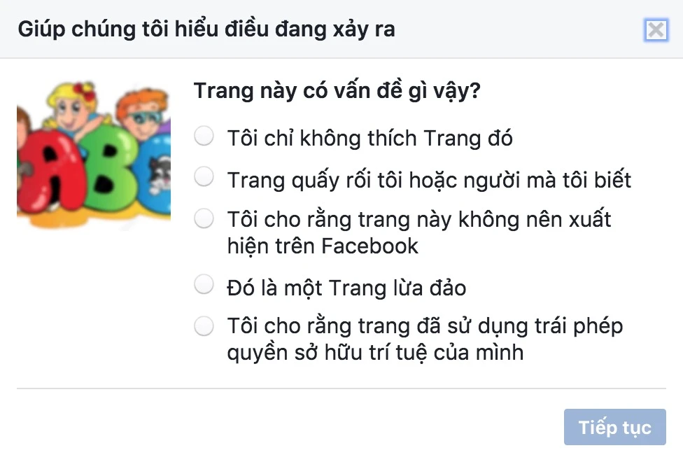 Khi gặp trường hợp trên, người dùng nên báo cáo fanpage hoặc tài khoản cá nhân lừa đảo với Facebook bằng cách bấm vào biểu tượng ba chấm trên fanpage và chọn Report Page (báo cáo trang) > It’s a scam (đó là một trang lừa đảo) và làm theo các bước hướng dẫn cho đến khi hoàn tất.