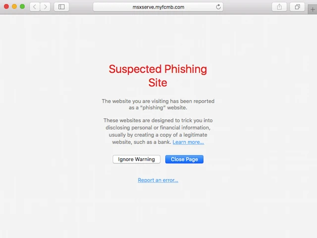 Để tiếp tục sử dụng email, nó yêu cầu người dùng phải cung cấp thông tin về tên đăng nhập và mật khẩu bằng cách nhấp vào một liên kết có trong email. Tự động trình duyệt Chrome và Safari sẽ cảnh báo trang web này có dấu hiệu lừa đảo, người dùng chỉ cần nhấn Close Page để tắt.
