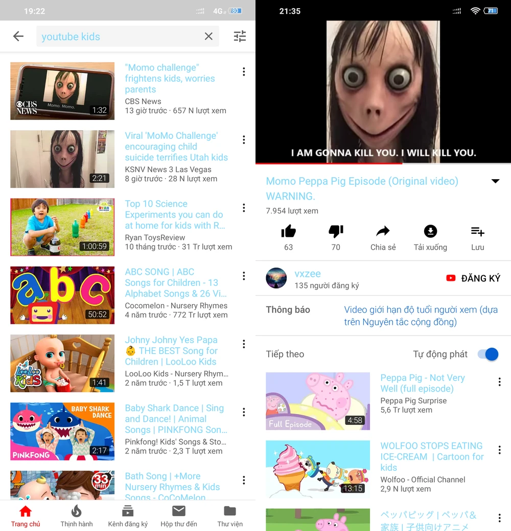 Theo ghi nhận, Momo Challenge hiện vẫn còn len lỏi trong một số video hoạt hình Peppa Pig trên YouTube, do đó, các bậc cha mẹ nên thận trọng khi cho con trẻ sử dụng điện thoại.