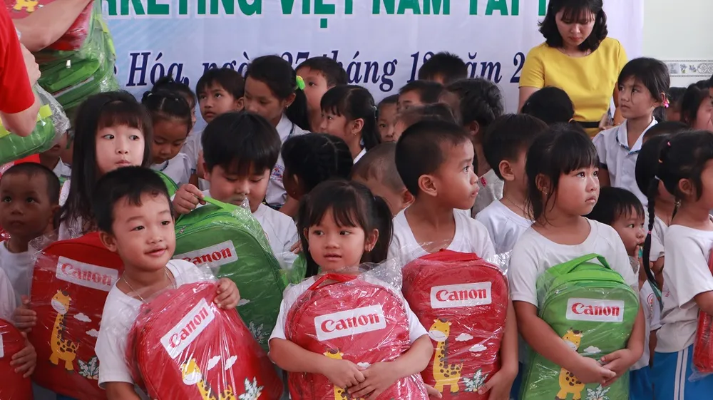 Cùng với việc trao tặng lớp học, đoàn đại diện Canon Marketing Việt Nam đã ghé thăm và hỗ trợ Trung tâm Bảo trợ Xã hội tỉnh Long An và một em học sinh có hoàn cảnh khó khăn. Em Phan Văn Nhật, học sinh lớp 1 trường tiểu học Tân Thành, có gia đình thuộc diện nghèo của xã, không có đất canh tác và nhà ở chỉ được dựng tạm bợ bằng tre nứa.