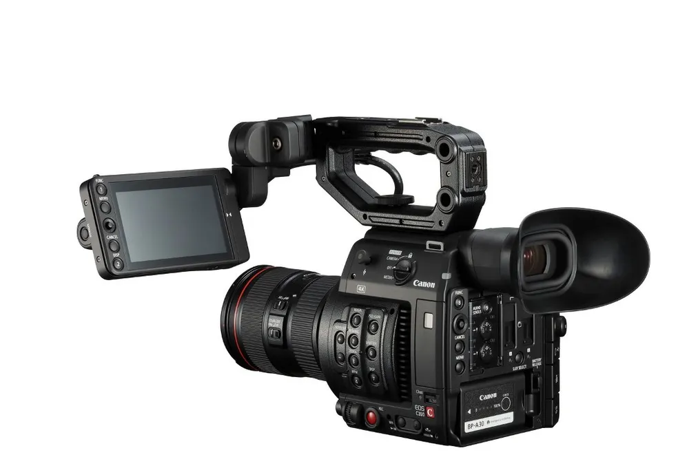 So với EOS C300 Mark II, khoảng cách giữa báng cầm và trục quang đã được khoảng 9mm, cân bằng cân nặng cho việc cầm nắm. Báng cầm có thể gắn vào và tháo ra một cách dễ dàng.