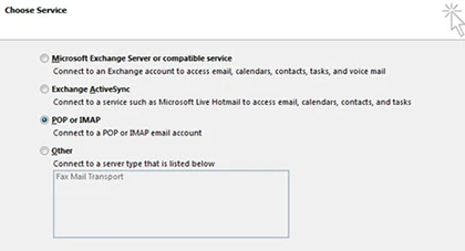 Khi trình thuật sĩ hiện ra, bạn kích chọn vào tùy chọn Manual setup or additional server typesrồi nhấn Next để tiếp tục. Trong hộp thoại tiếp theo, bạn chọn là POP or IMAP rồi chuyển sang bước kế tiếp.