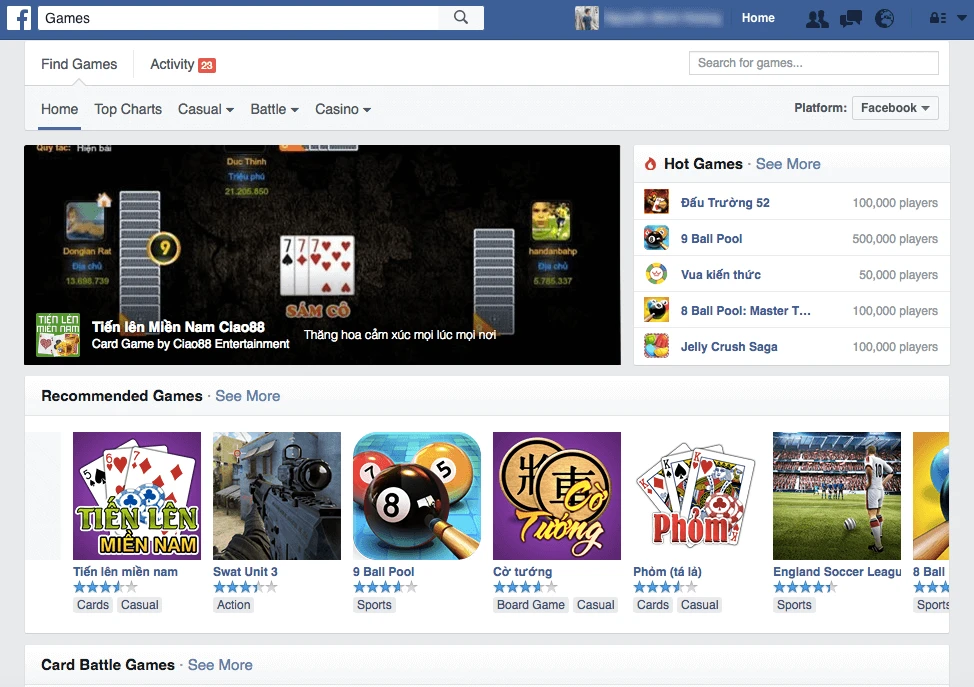 - Bước 2: Sau đó, nhấp vào phần Games ở khung nhỏ bên trái hoặc truy cập trực tiếp vào địa chỉ https://www.facebook.com/games.