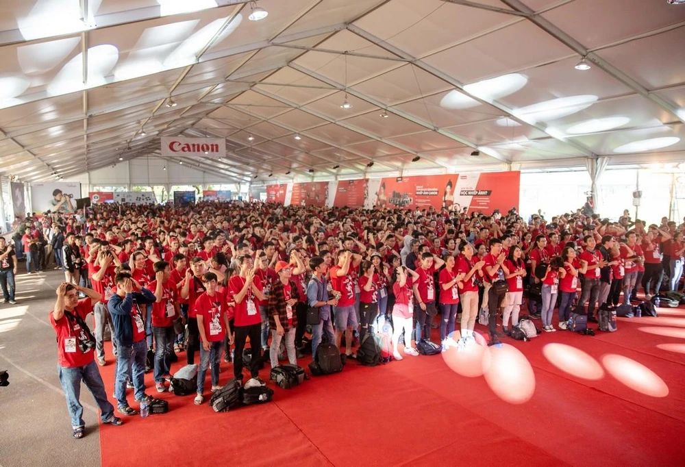 Canon PhotoMarathon 2018 tràn ngập sắc đỏ màu áo dự thi của đông đảo các bạn trẻ yêu nhiếp ảnh, cùng hòa chung vào tinh thần tranh đua hào hứng và săn tìm những góc hình đẹp.