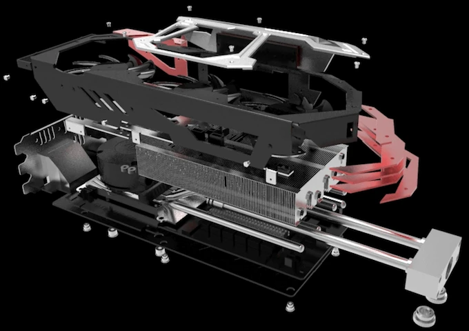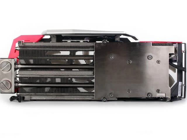 Khối tản nhiệt khí được trang bị tới tận 5 ống dẫn nhiệt bằng đồng, lấy nhiệt trực tiếp từ GPU và phân tán lên các lá thép, trong khi hệ thống làm mát bằng nước sẽ tiếp sức cho khả năng tản nhiệt đạt hiệu năng tối ưu hơn.