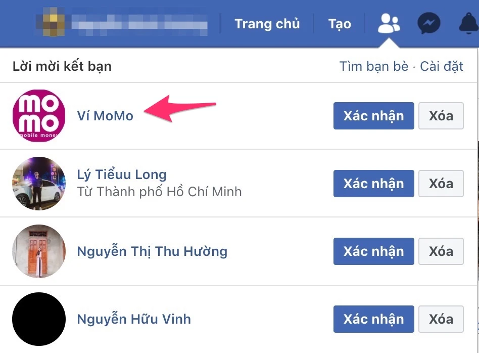 Cụ thể, kẻ gian sẽ tạo các tài khoản Facebook giả mạo với tên gọi đại loại như Ví MoMo, Ví điện tử MoMo (sử dụng logo MoMo làm ảnh đại diện) để khiến người dùng tin tưởng.