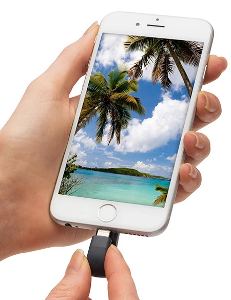 Tương tự như iXpand, iShowFast có bốn mức dung lượng từ 32 GB đến 256 GB, hỗ trợ hai cổng kết nối Lightning và USB 3.0 cho tốc độ sao chép dữ liệu nhanh hơn 14 lần so với các thiết bị thông thường, giá bán dao động 1,7-8,5 triệu đồng. Nếu muốn rẻ hơn, bạn có thể chọn mua USB OTG MyFlash với mức giá 800.000 đồng.