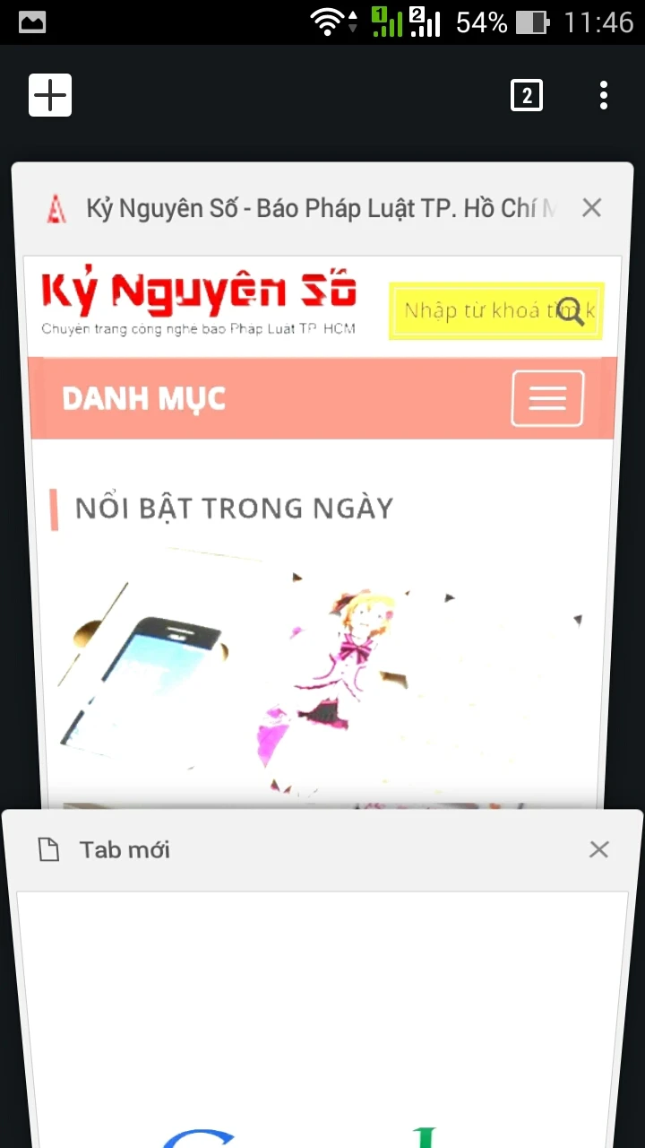 Vuốt nhẹ xuống để chuyển tab trên Crhome Beta