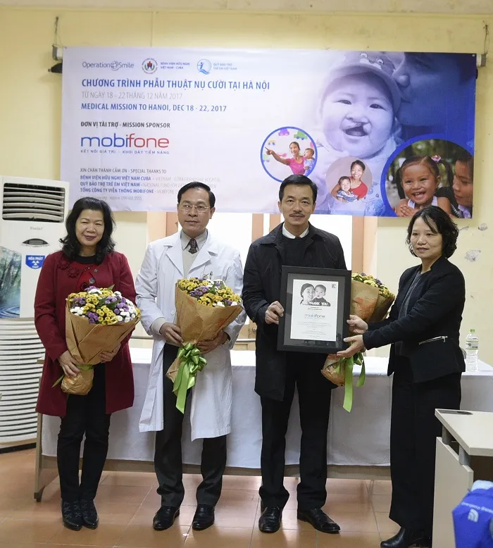 Tổ chức Operation Smile phối hợp với MobiFone tổ chức khám và phẫu thuật miễn phí cho 150 trẻ em có dị tật khe hở môi, khe hở vòm miệng tại hai địa điểm Hà Nội và TP.HCM trong thời gian từ ngày 18 đến ngày 29-12-2017.